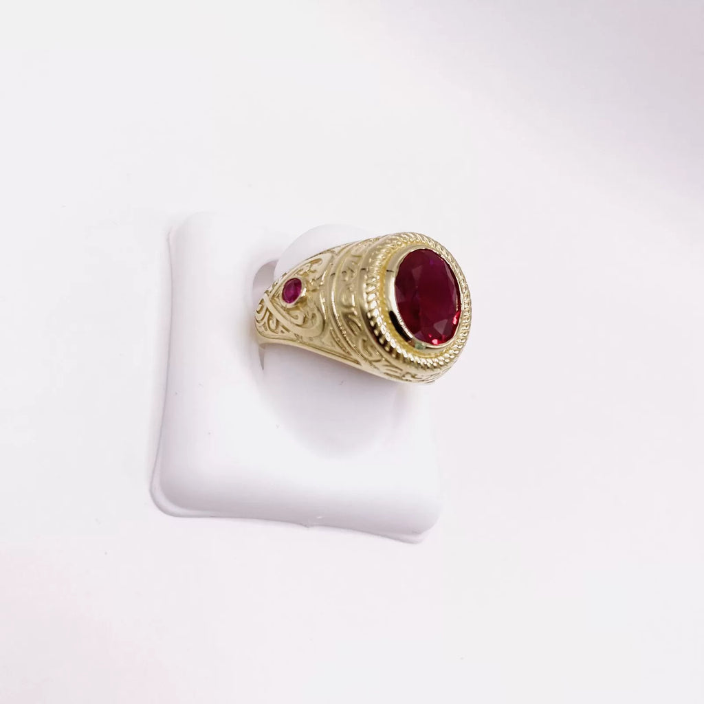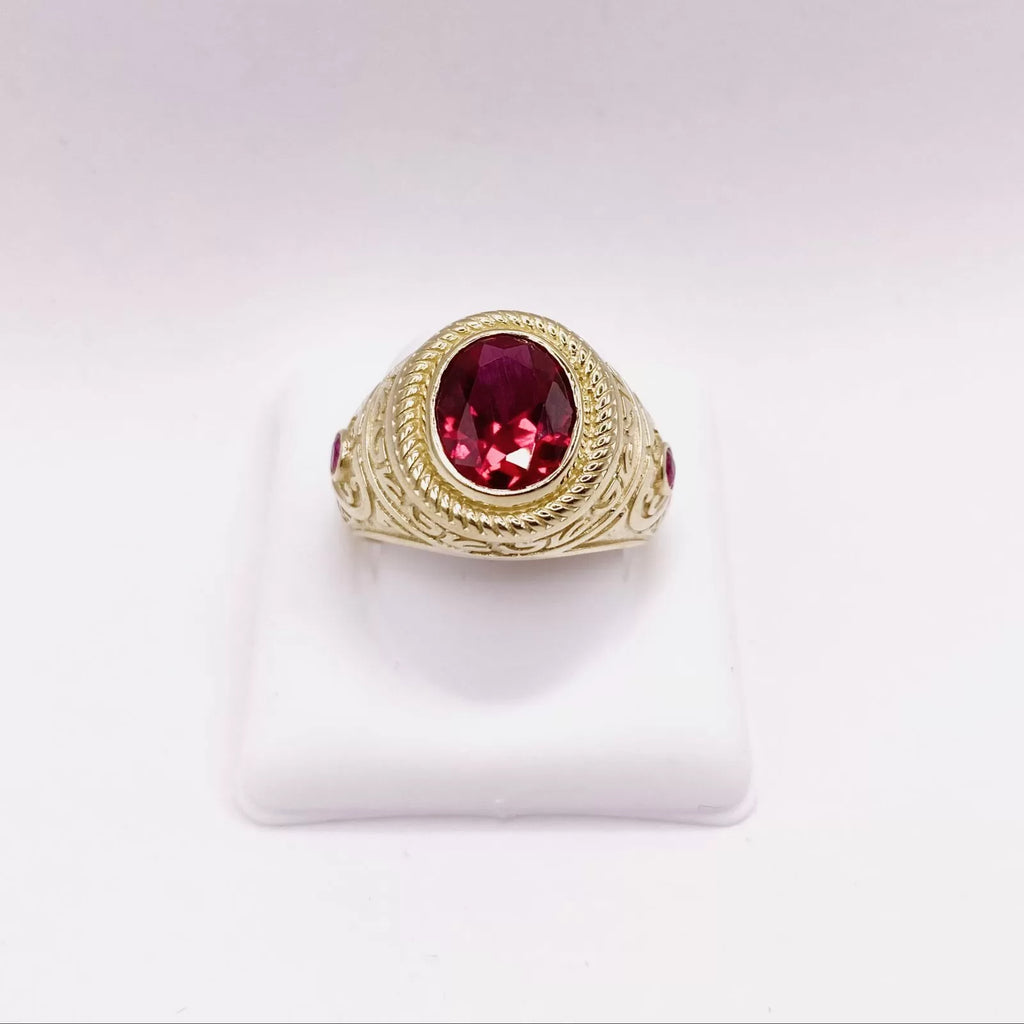 • Descripción: ANILLO ZIRCONIA OVAL GUINDA CON MARGEN SOGA - ORO 10K