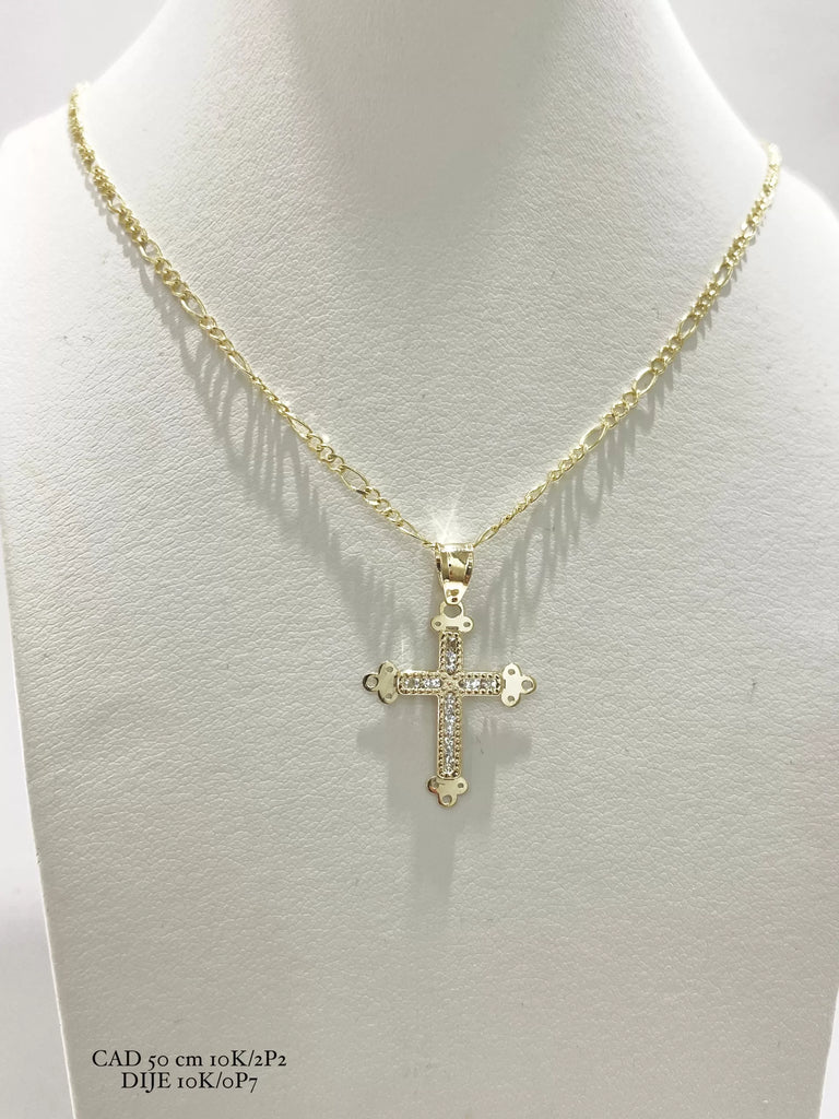 Incluye: Cadena Cart-Figaro 2 mm ancho x 45 cm largo + Dije/Cruz .