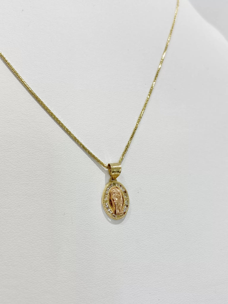 Incluye: Cadena Espiga 1 mm ancho x 45 cm largo + Dije/medalla .