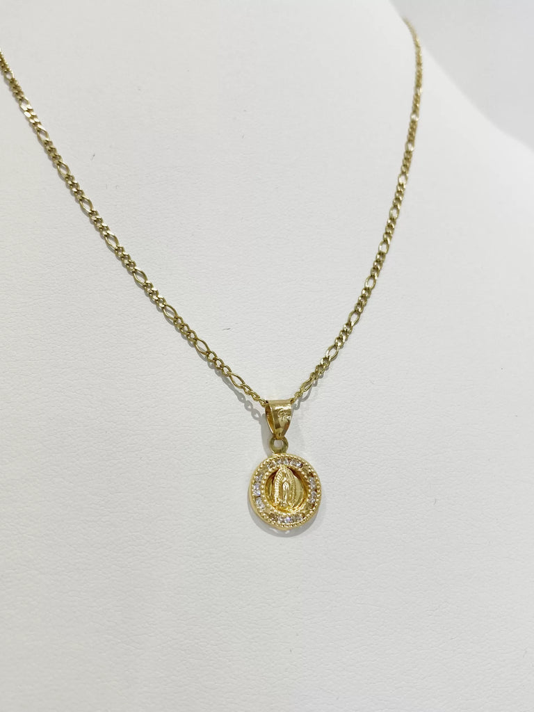 Incluye: Cadena Cart Figaro 2 mm ancho x 40 cm largo + Dije/medalla .