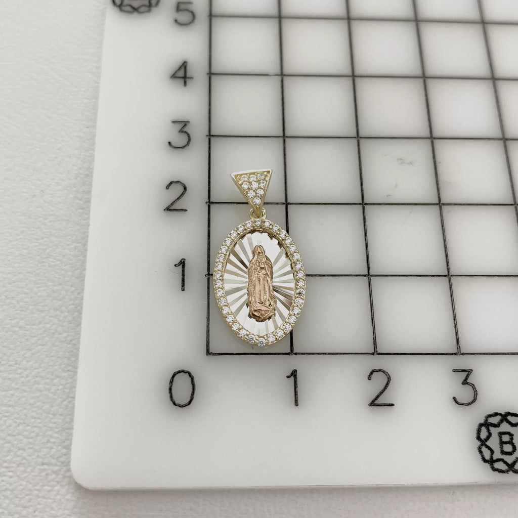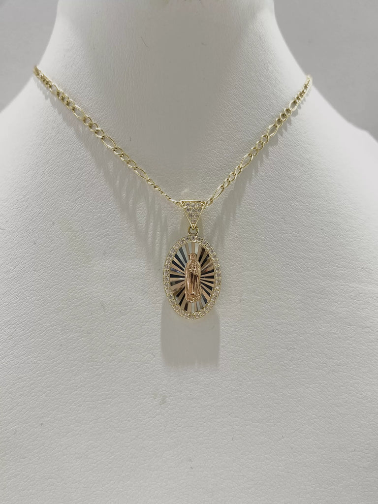 CADENA CON MEDALLA VIRGEN GUADALUPE OVALADA DETALLES BLANCO Y ROSA - ORO 10K