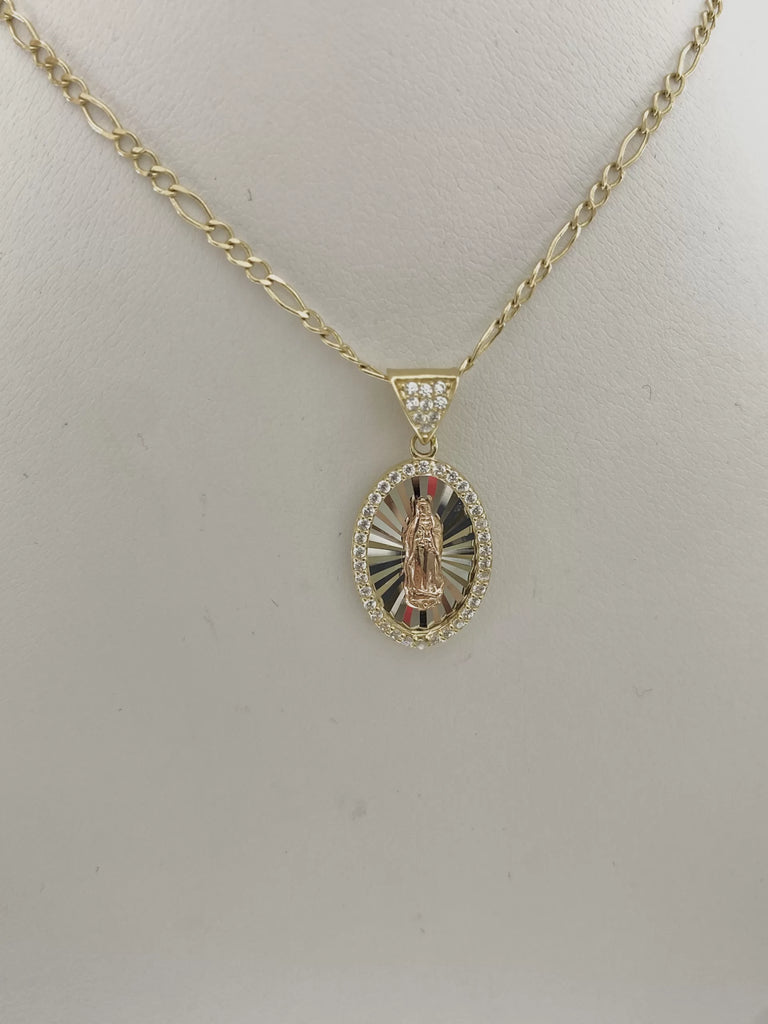 • Descripción: CADENA CON MEDALLA VIRGEN GUADALUPE OVALADA DETALLES BLANCO Y ROSA - ORO 10K