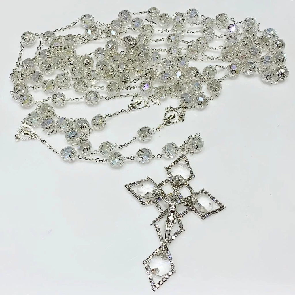 • Descripción: LAZO CRISTAL CON CASQUILLA CRUZ ROMBOS - PLATEADO