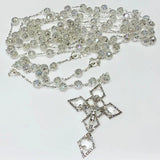 LAZO CRISTAL CON CASQUILLA CRUZ ROMBOS - PLATEADO