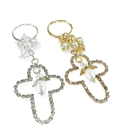 • Descripción: LLAVERO CRUZ CONTORNO CON ANGELITO COLGANTE