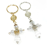 LLAVERO CRUZ CRISTAL CON MEDALLA SAN BENITO