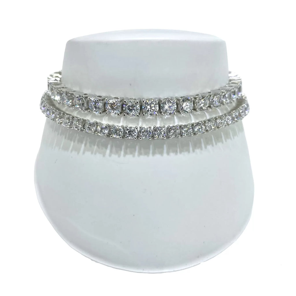 PLATA .925 CON BAÑO DE ORO BLANCO \n \nMEDIDAS APROXIMADAS: 3 mm x 18 cm Ò 22 cm de largo. \n \nUltimas fotos comparativas entre ancho 3 mm y 4 mm también disponible en nuestra tienda.