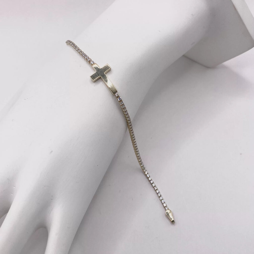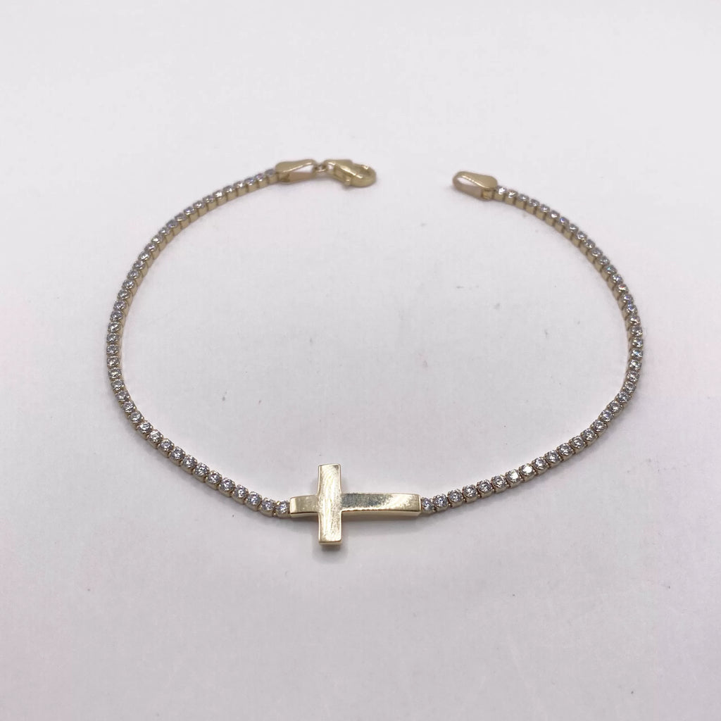 PULSERA TIPO TENNIS CON CRUZ TRANSVERSAL - ORO 10K