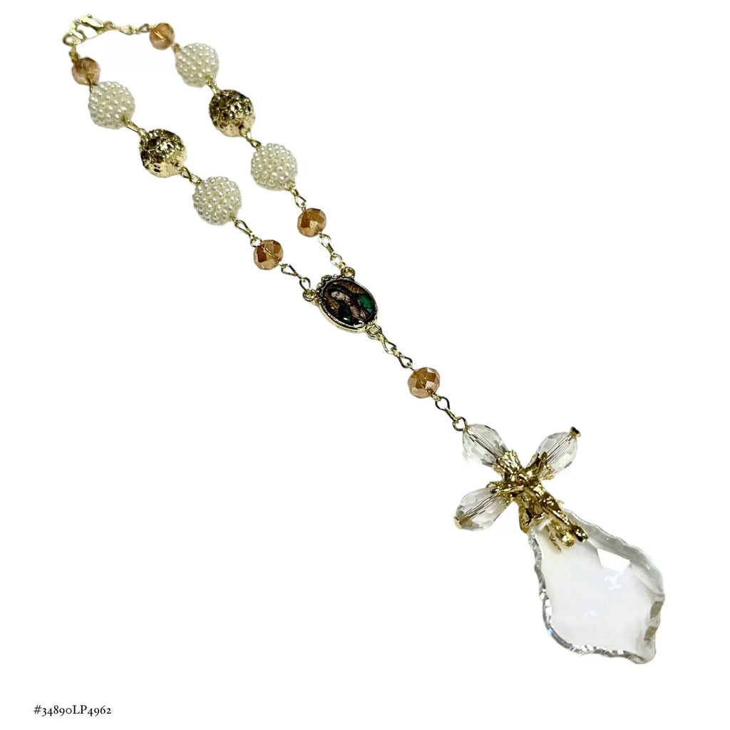 • Descripción: MISTERIO PERLA BORREGO CON CHISPA GR. Y CRISTO EN HOJA CRISTAL