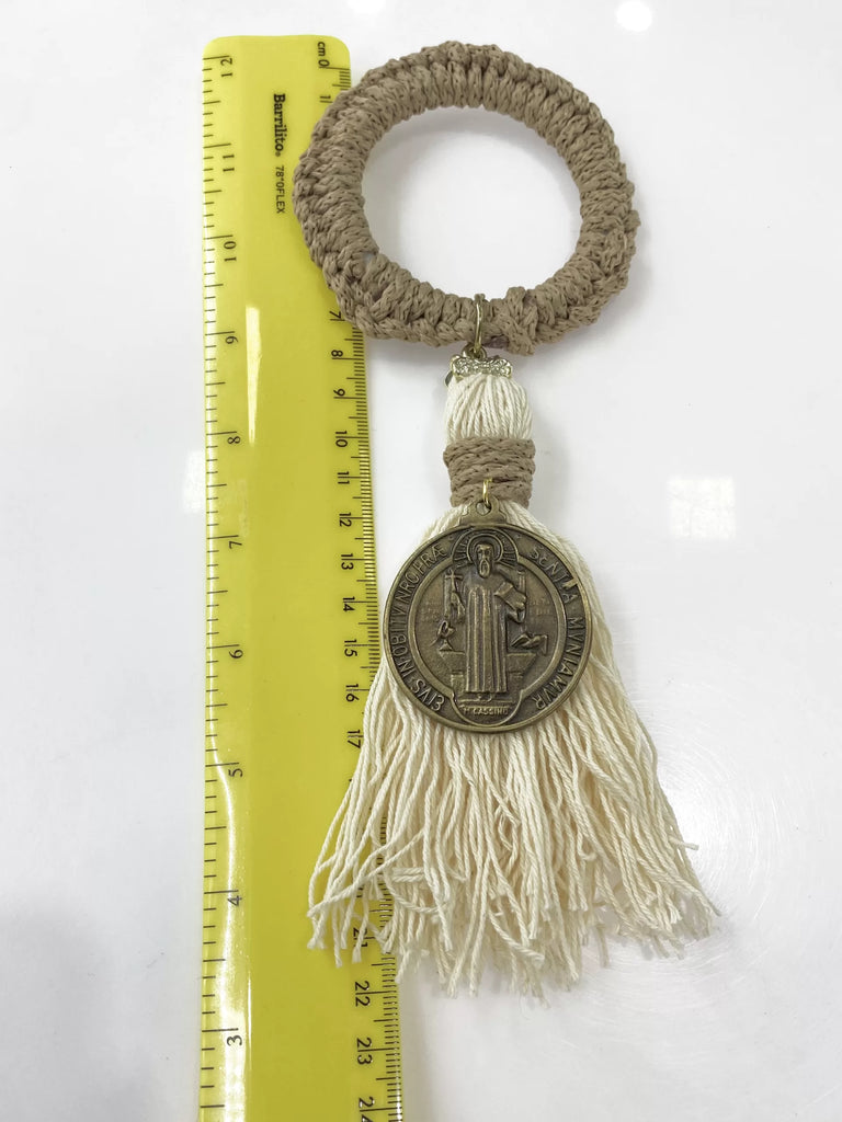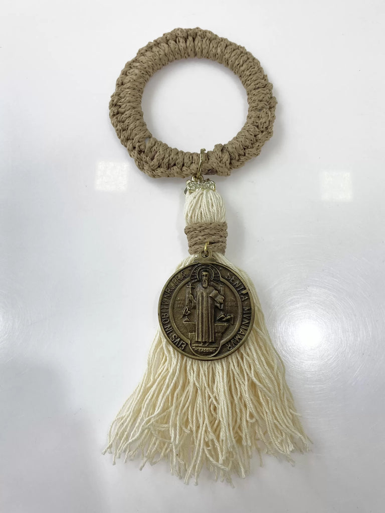 • Descripción: ADORNO BENDICIÓN ARO CAPUCCINO Y MOTA DE HILO CON MEDALLA SAN BENITO ABAD