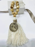 ADORNO BENDICIÓN CON BOLAS DE MADERA Y MOTA DE HILO CON MEDALLA SAN BENITO ABAD