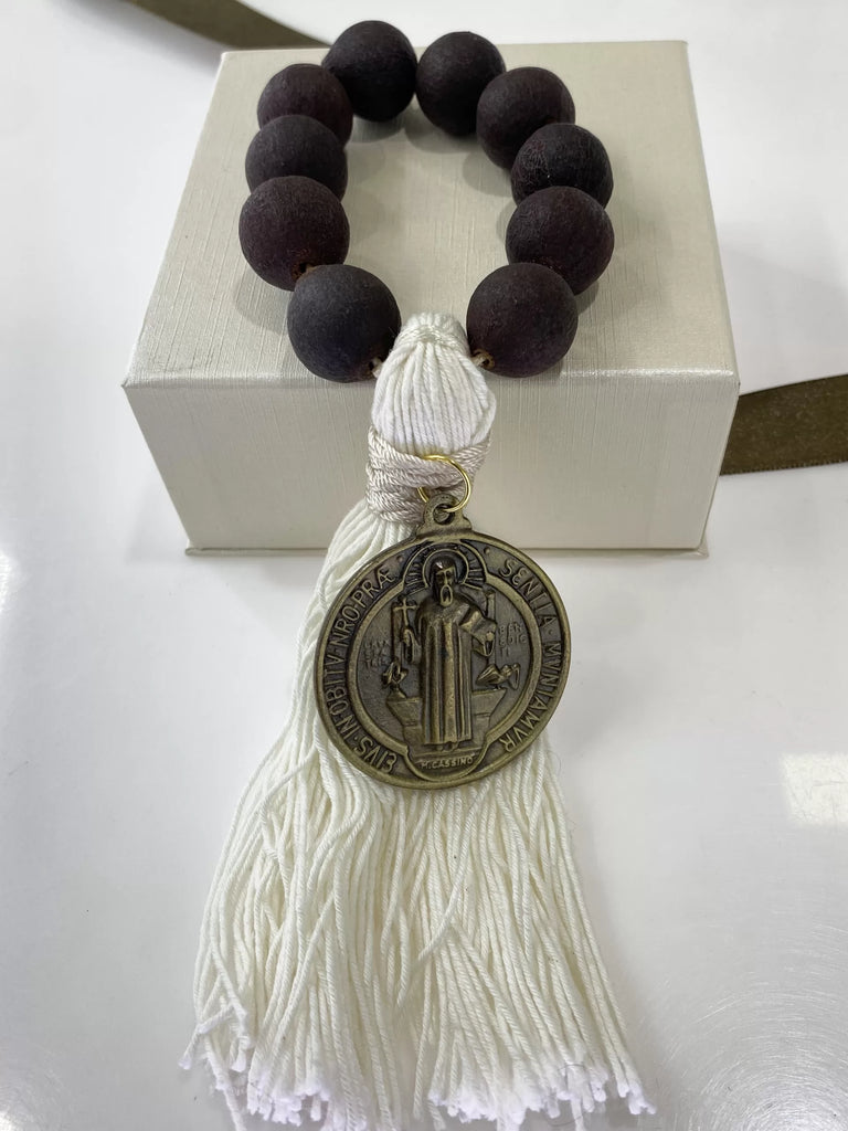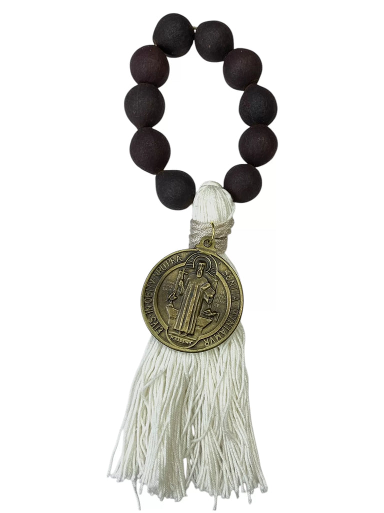 ADORNO BENDICIÓN CON SEMILLA Y MOTA DE HILO CON MEDALLA SAN BENITO ABAD