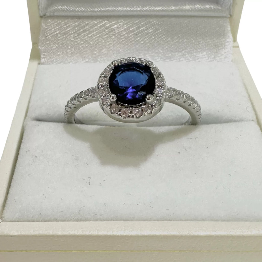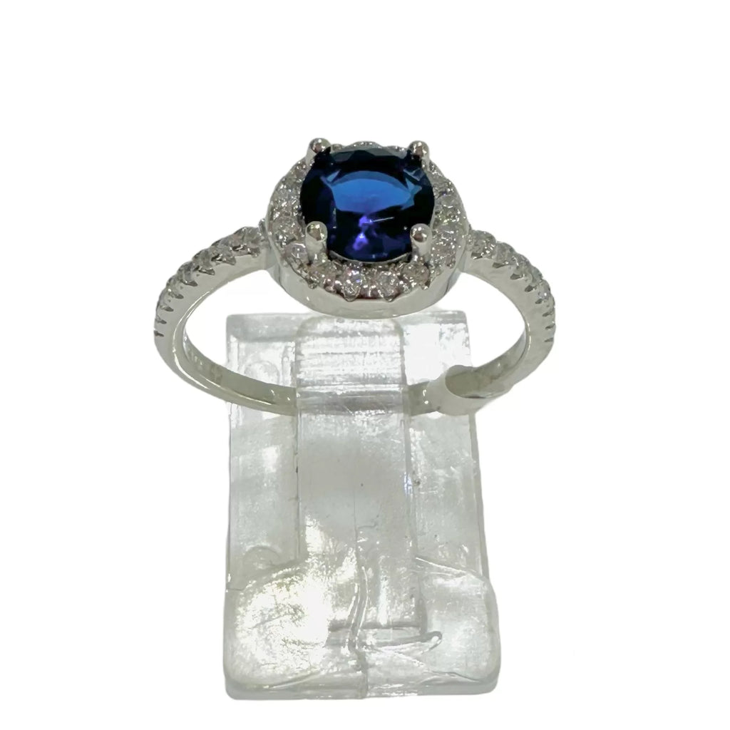 • Descripción: ANILLO CIRCULO ZIRCONIA AZUL CON LATERALES - PLATA .925