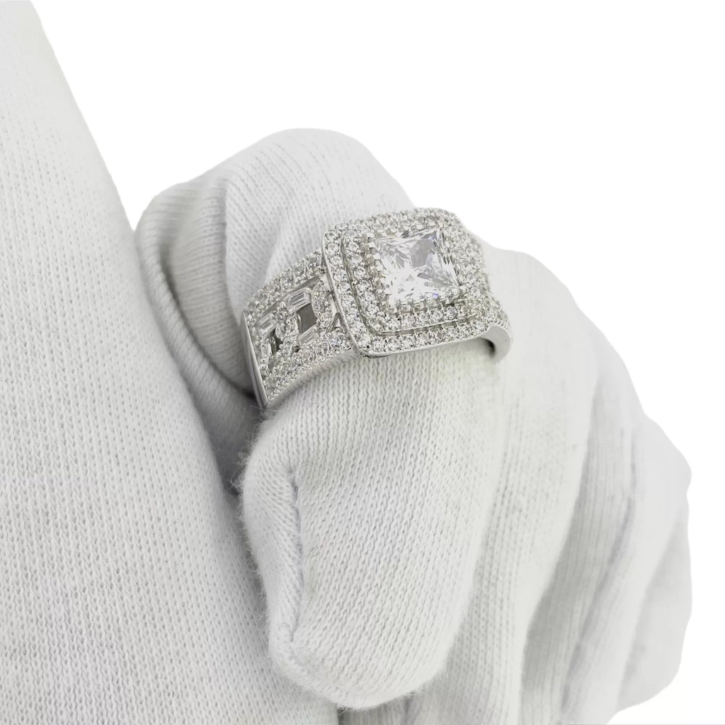 ANILLO CUADRO DOBLE LATERAL CADENA BAGUETTES - PLATA .925