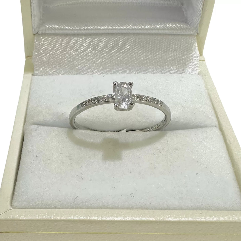 • Descripción: ANILLO OVAL MINI ZIRCONIA CON LATERALES - PLATA .925