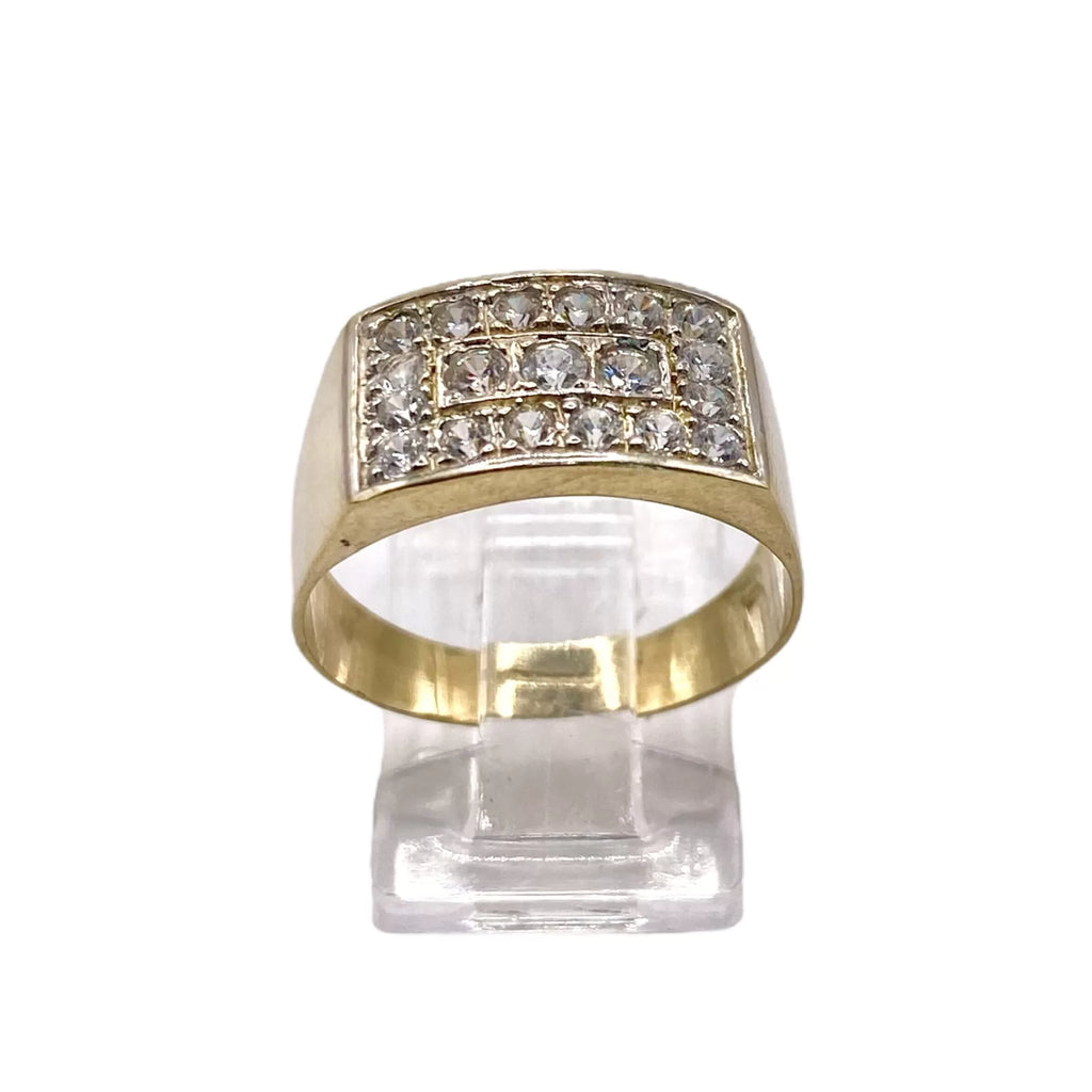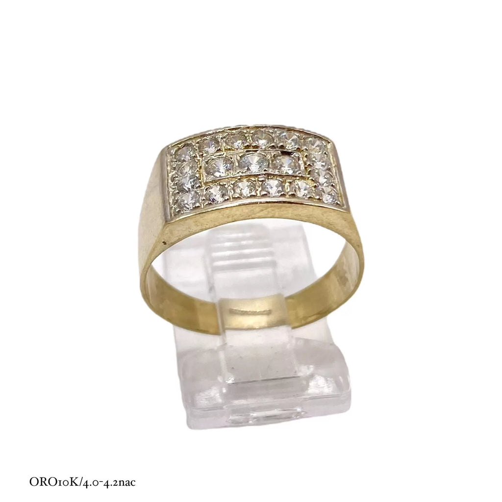 • Descripción: ANILLO PLACA CON ZIRCONIAS - ORO 10K