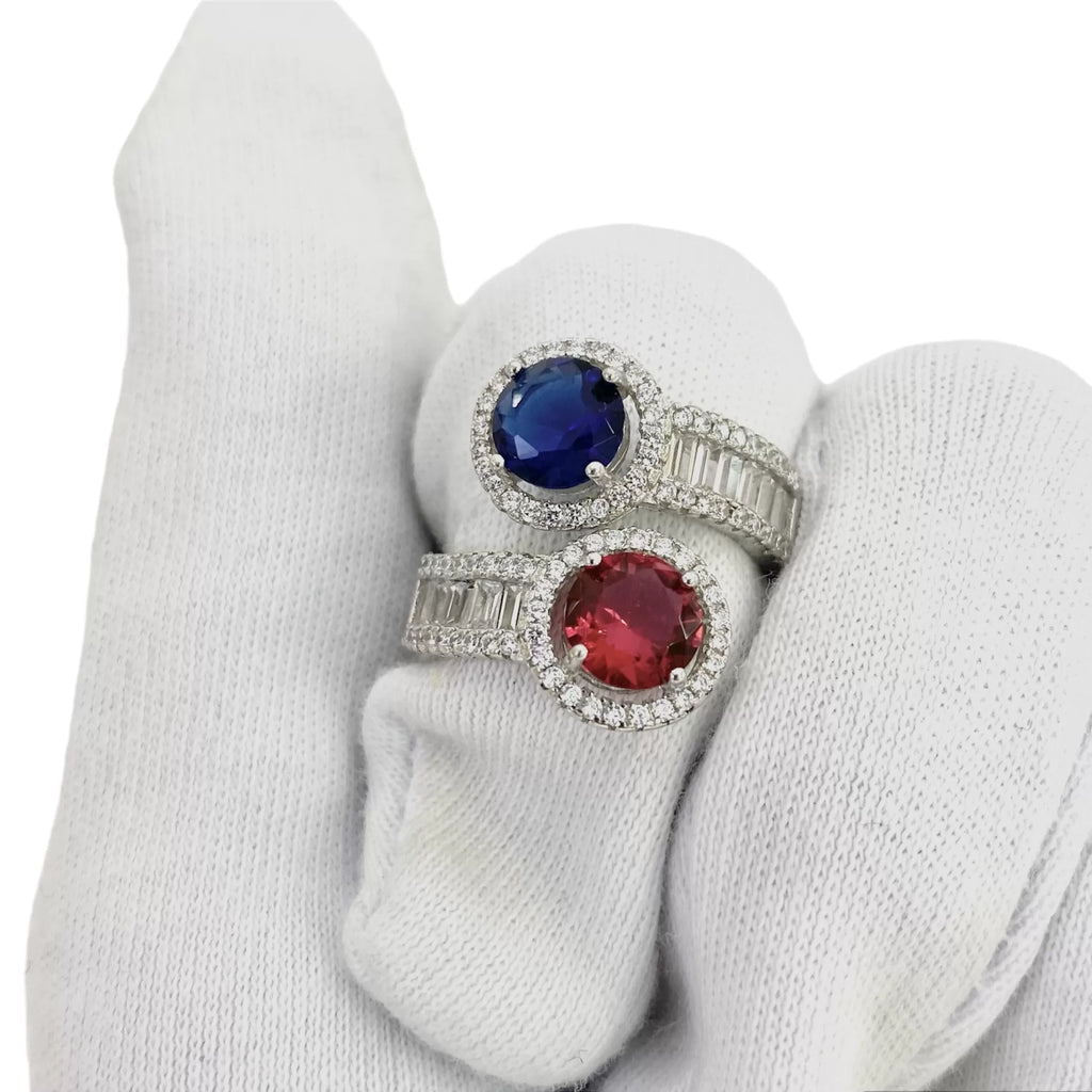 ANILLO ZIRCONIA AZUL Y ROJO - PLATA .925