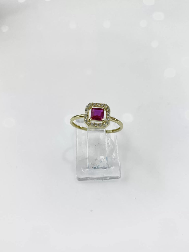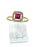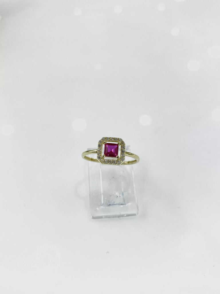 ANILLO ZIRCONIA CUADRO GUINDA CONTORNO MICRO - ORO 10K
