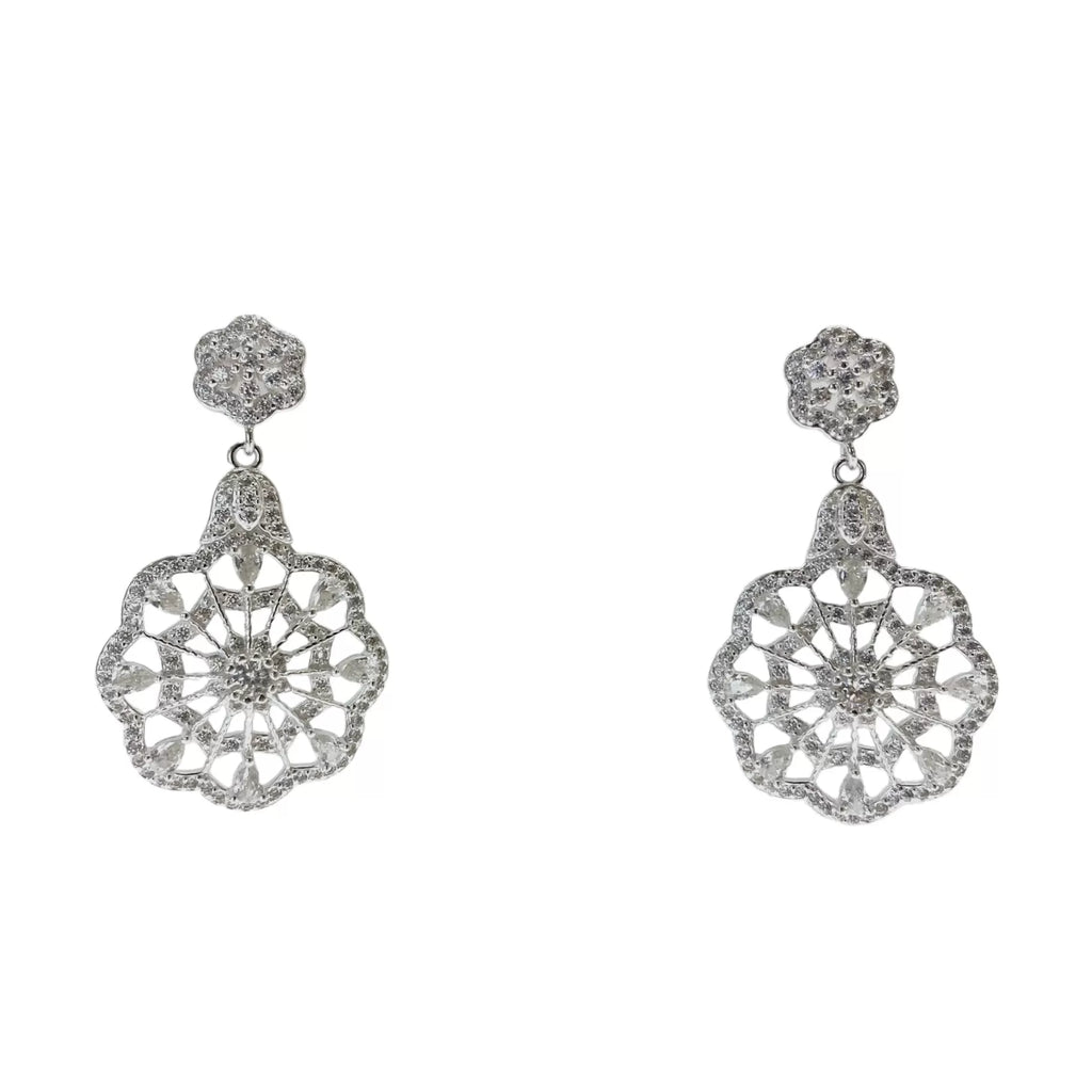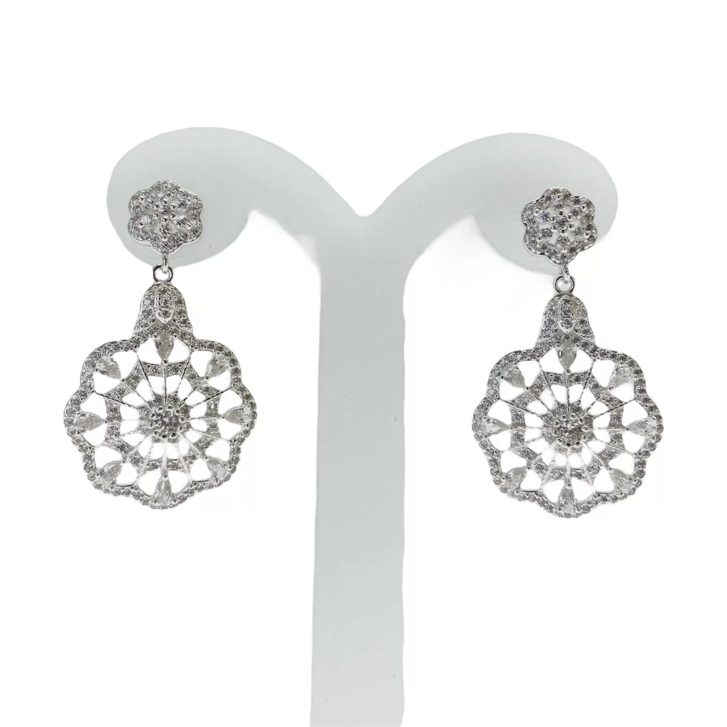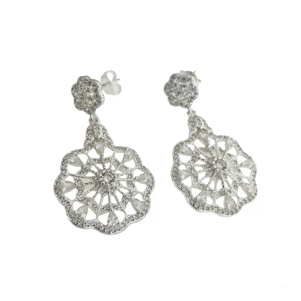 ARETE ELEGANTE DE FIESTA TIPO FLOR - PLATA .925