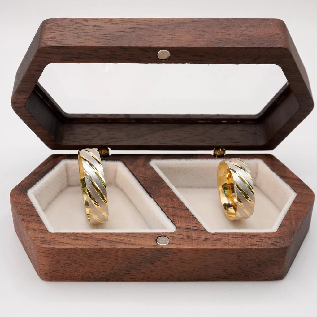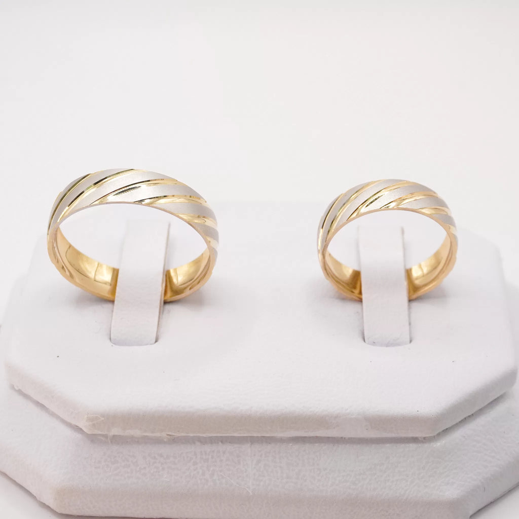 ARGOLLAS BI COLOR - LÍNEAS DIAGONALES BLANCO MATE Y AMARILLA LISA - ORO 14K