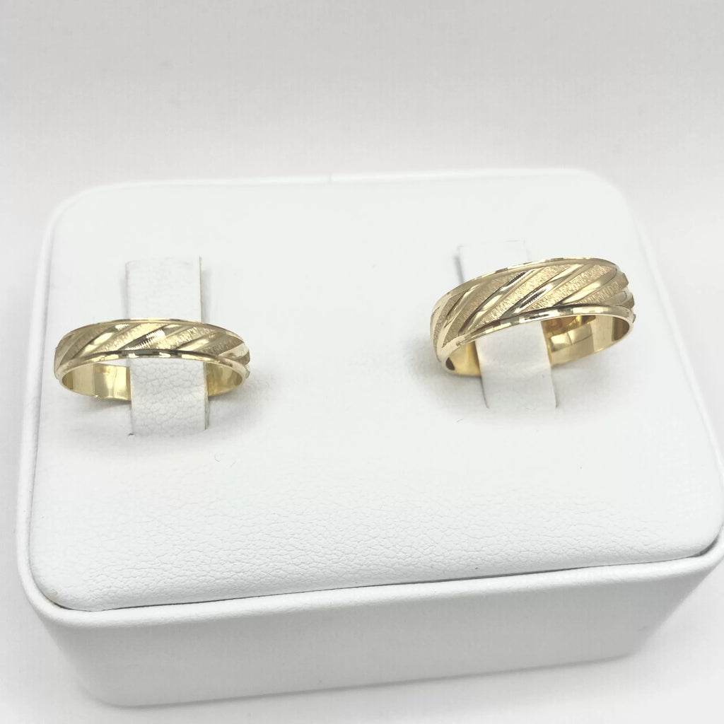 • Descripción: ARGOLLAS ORO AMARILLO - LINEAS DIAGONALES FONDO ARENADO - ORO 10K