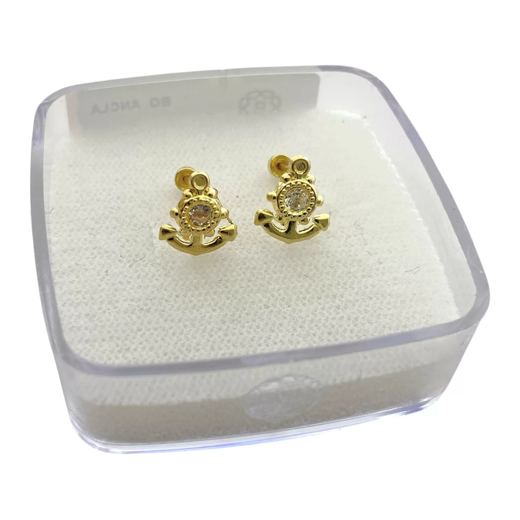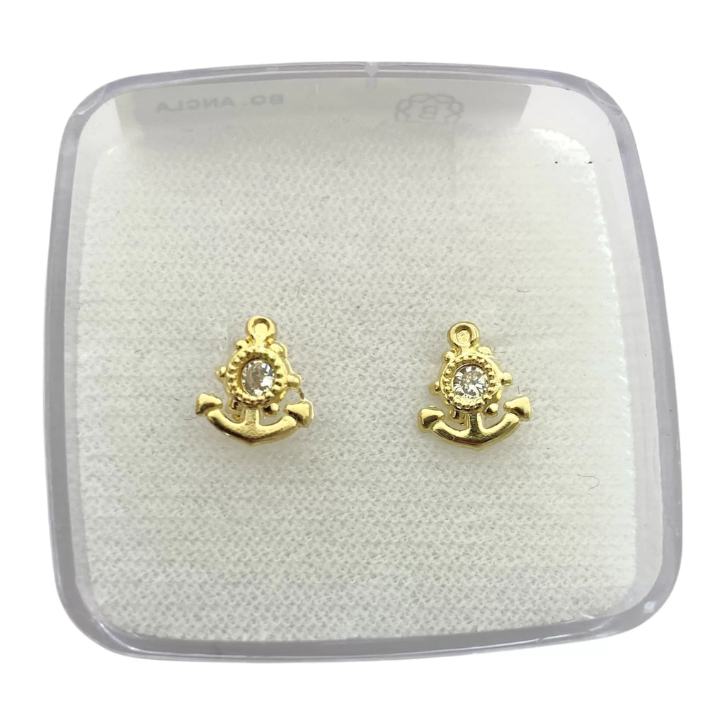 BROQUEL ANCLA CON PIEDRA - ORO 10K