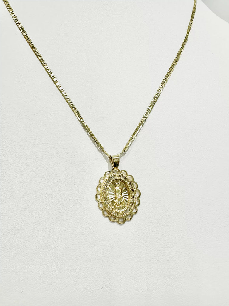 CADENA CON MEDALLA VIRGEN DE GUADALUPE MARGEN ONDAS - ORO 10K
