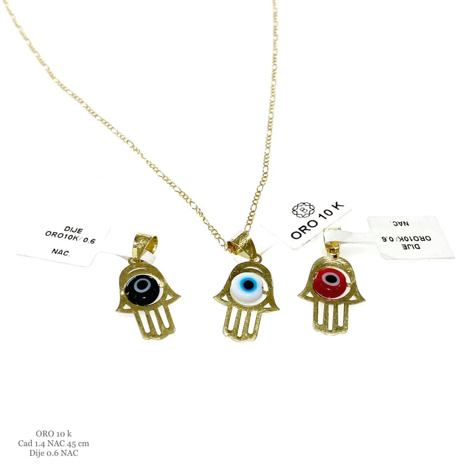 • Descripción: GARGANTILLA MANO DE FATIMA OJO COLORES - ORO 10K