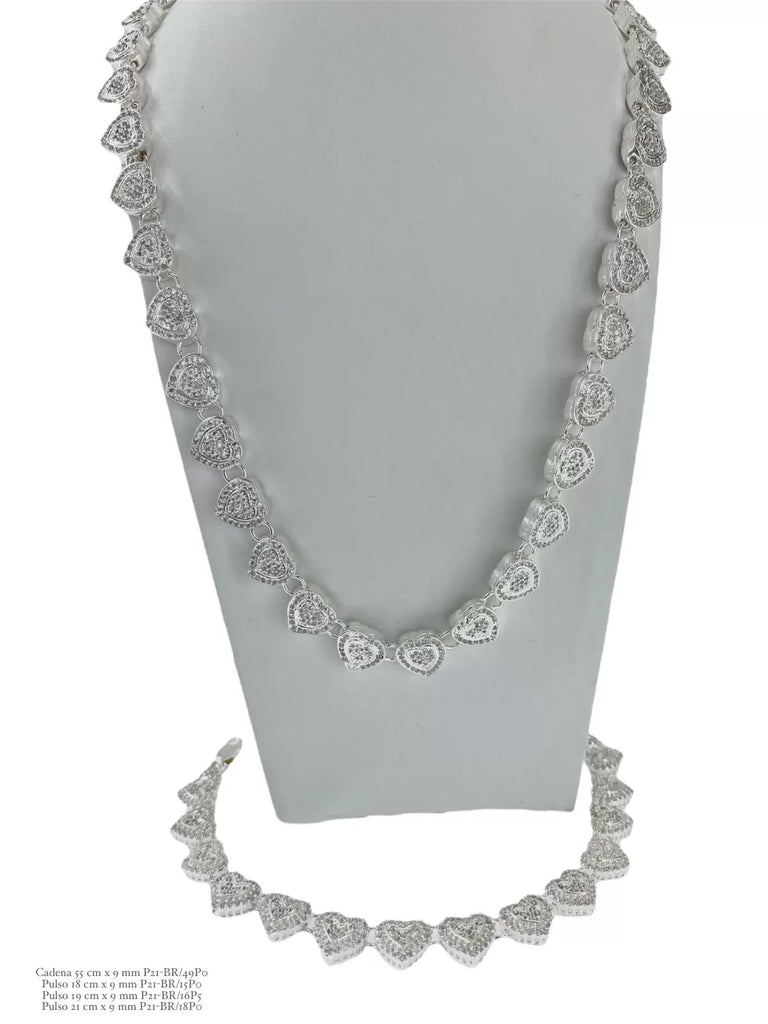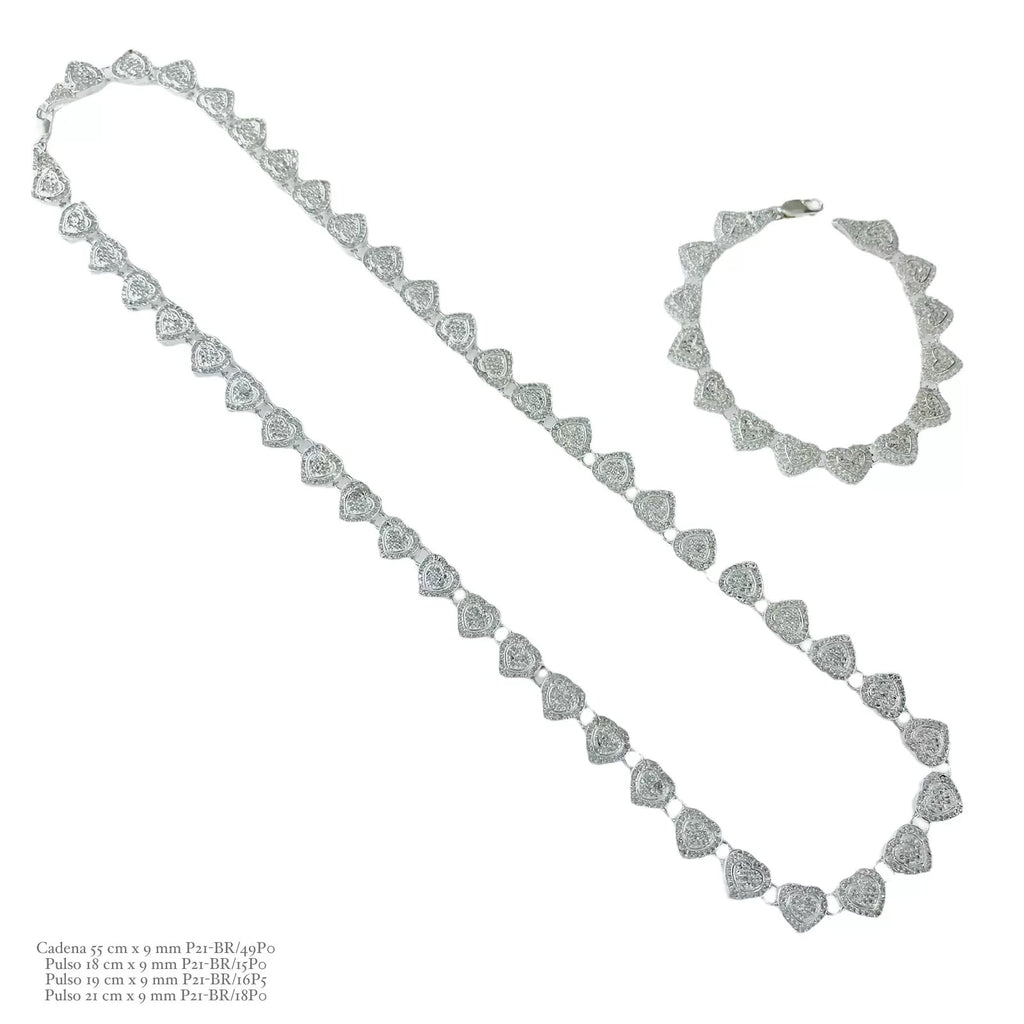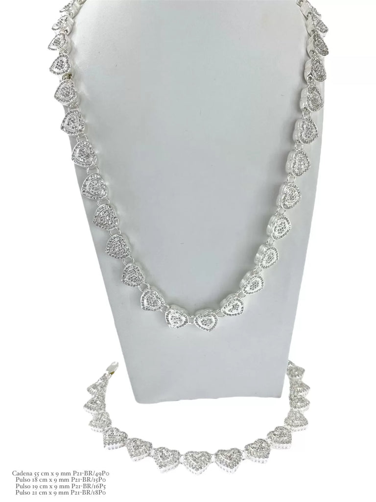 • Descripción: SET JUEGO DE CADENA Y PULSO CORAZONES ZIRCONIA - PLATA .925