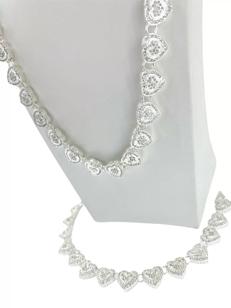 SET JUEGO DE CADENA Y PULSO CORAZONES ZIRCONIA - PLATA .925